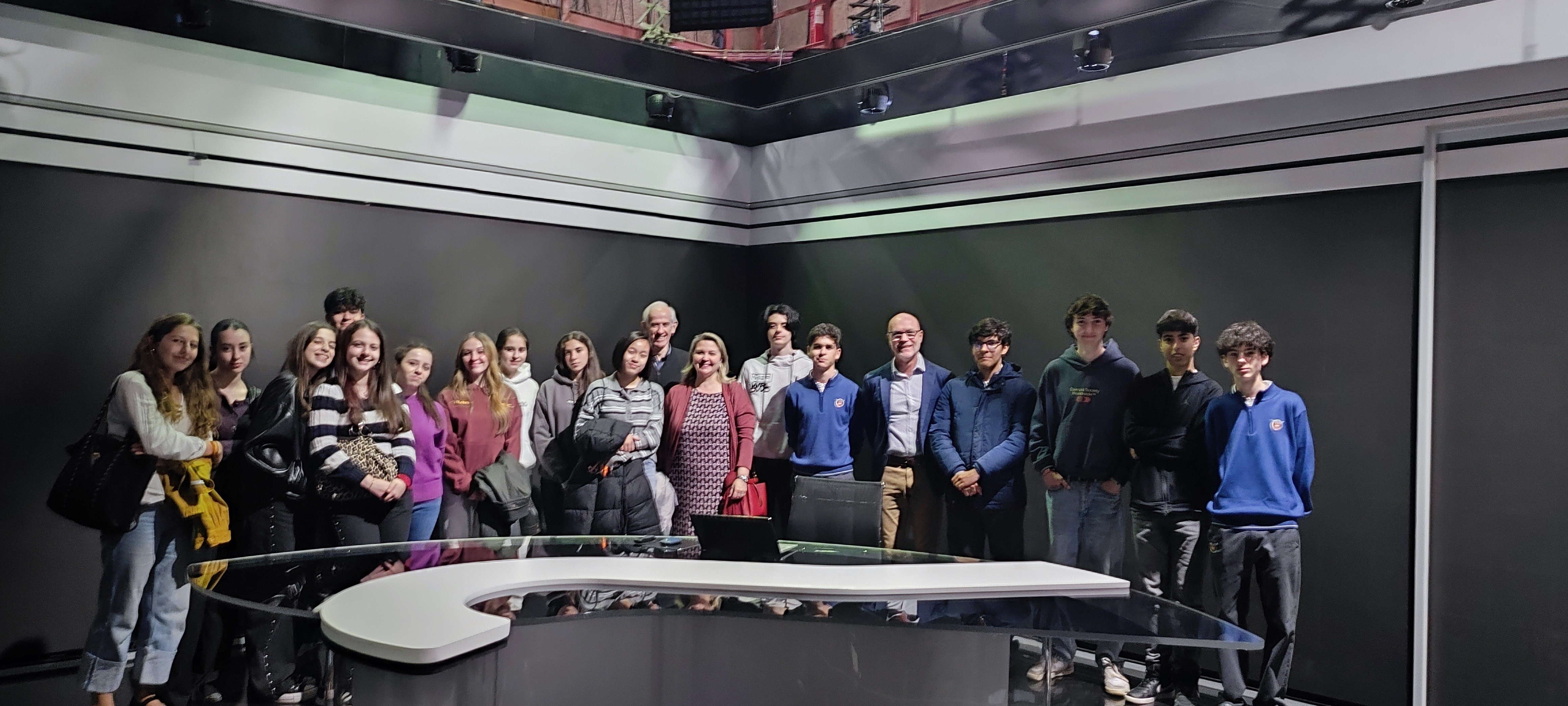 Un grupo de alumnos de Secundaria y Bachillerato, acompañados por el Coronel Director y por Marisa Cotobal, han visitado las instalaciones de los centros de emisión e informativos de RTVE, donde se producen telediarios y programas para canales como La 1, La 2 y 24 Horas. Estas instalaciones están ubicadas en el complejo conocido como “Torrespaña”, donde también se encuentra el llamado “Pirulí ”, que se construyó e inauguró con motivo del Mundial de Fútbol de 1982. Esta torre consta de un fuste de 120 metros de hormigón, un centro de control con panel de acero y varias plataformas de antenas, alcanzando un total de 232 metros. Es propiedad de Cellnex Telecom y funciona como centro de emisión y distribución de señal de TV y radio (TDT y FM) para Madrid y gran parte de España.