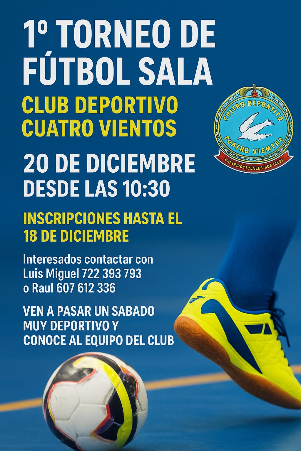 Se va a realizar en el Centro el 1er torneo navideño de fútbol sala, el 20 de diciembre a partir de las 10:30h.