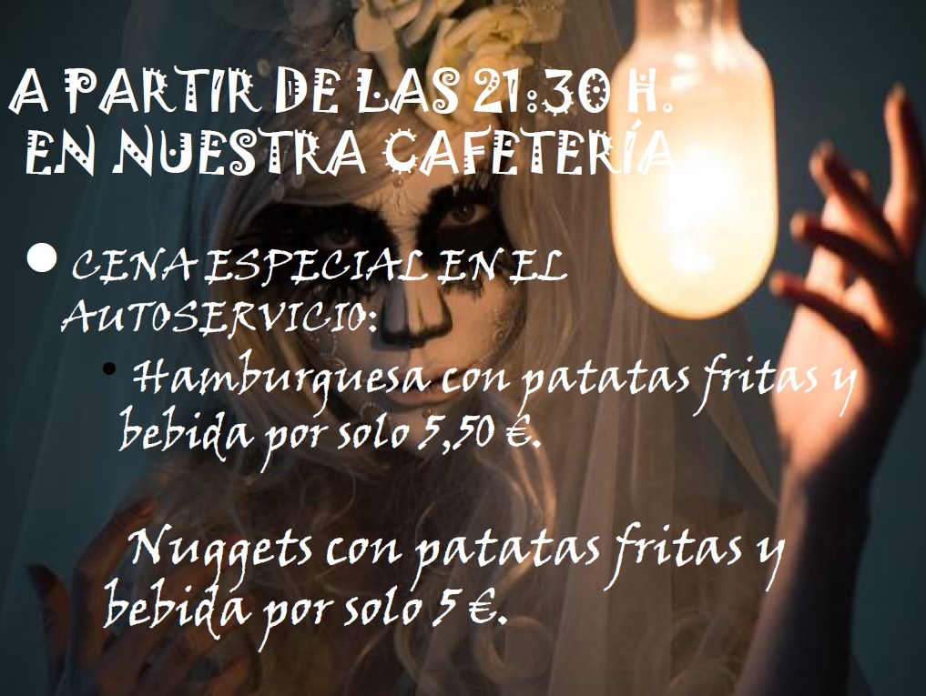 Habrá baile y premios a los mejores disfraces en nuestra discoteca, y menús especiales de cena en la cafetería.