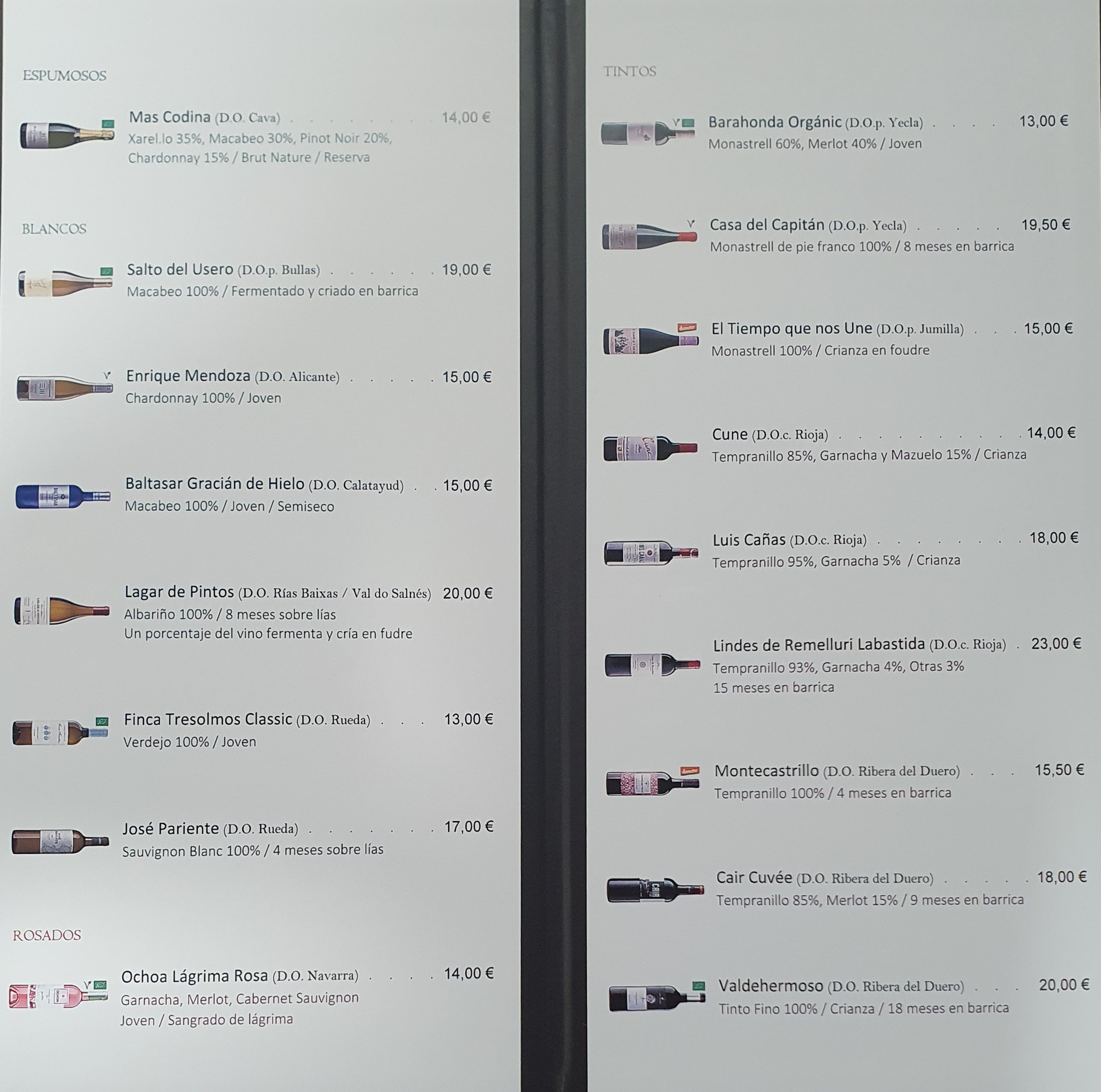 Carta de Vinos