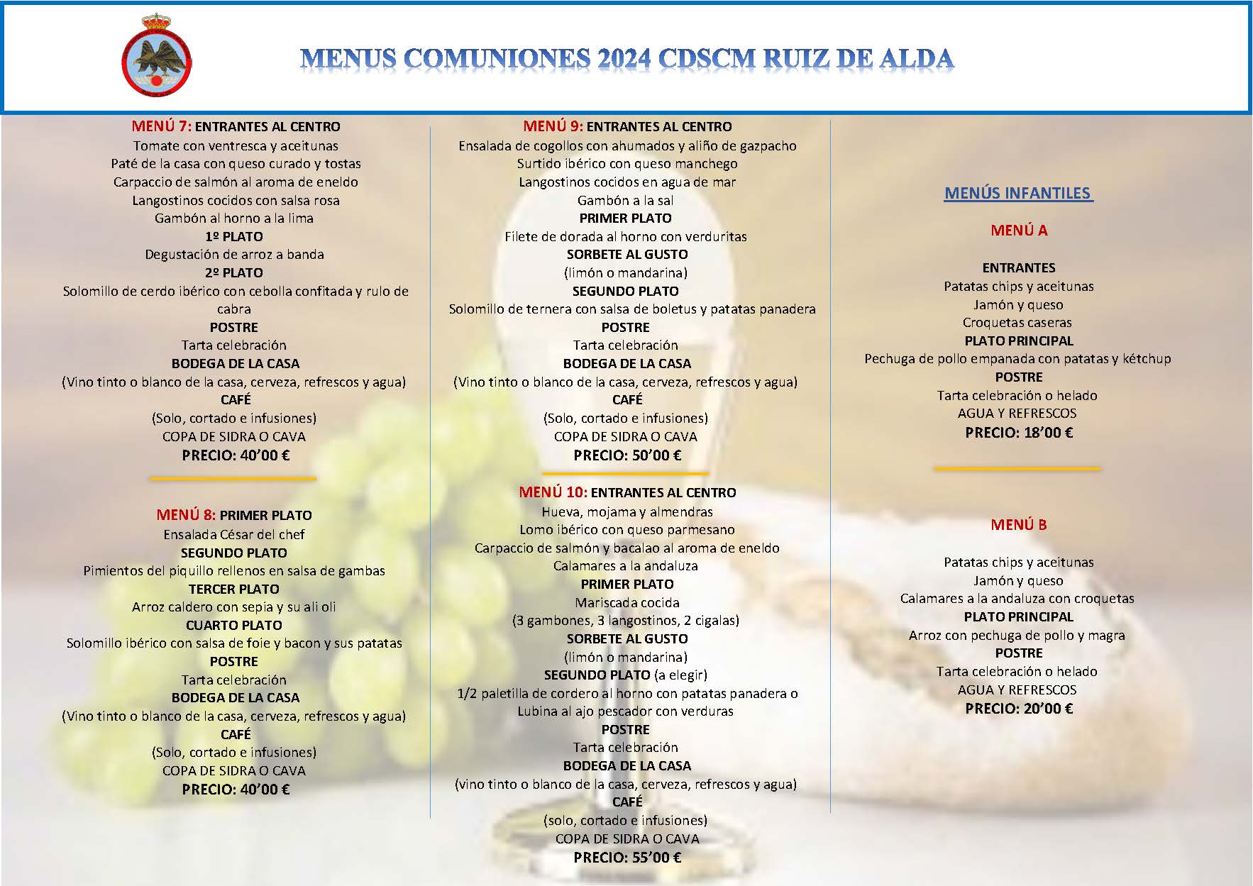 Menú Comuniones 2026 2