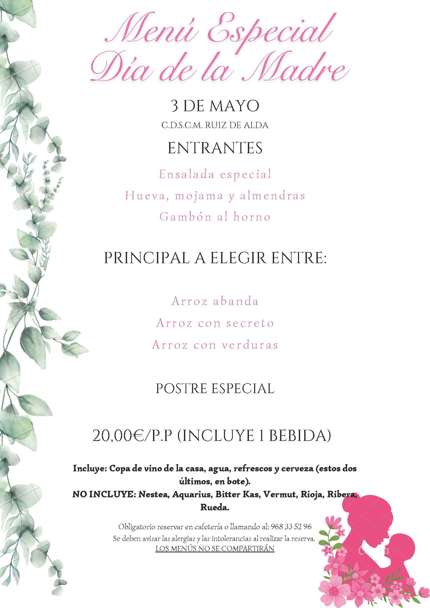 Menú especial Día de la madre 03 mayo 2026