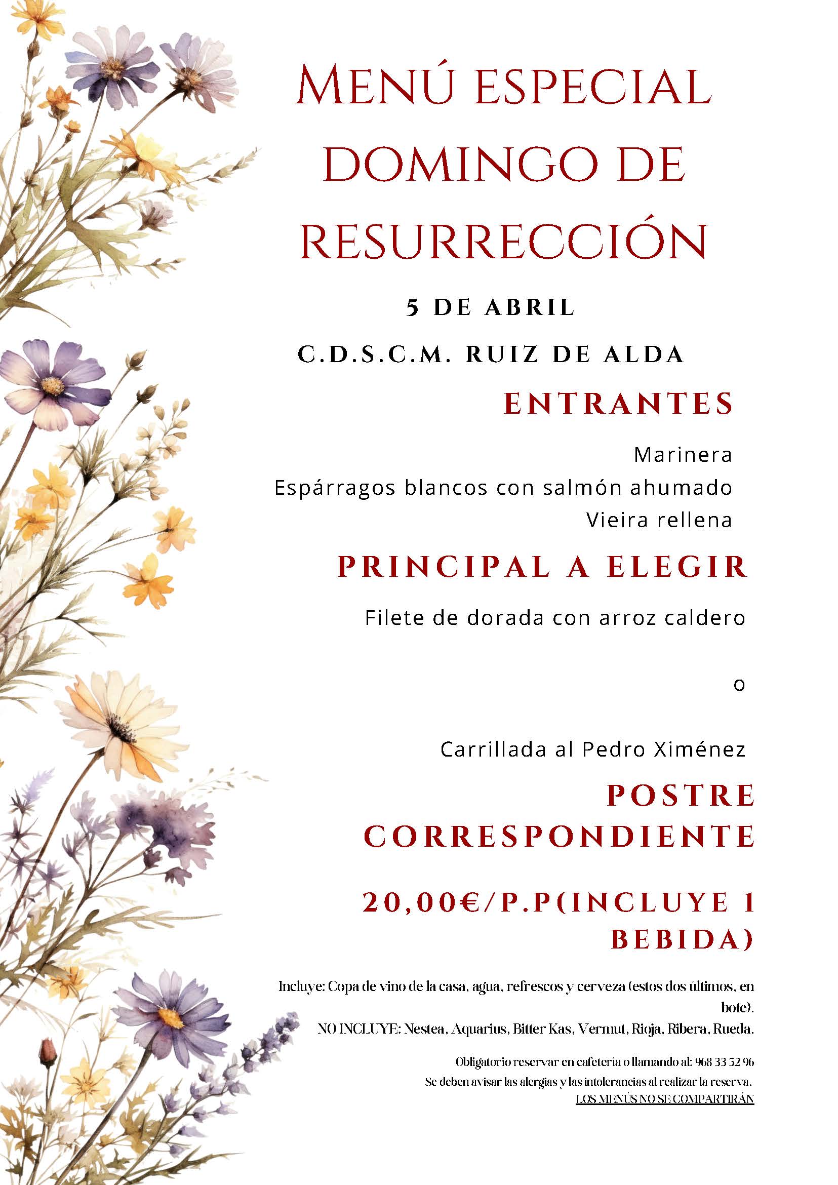 Menú especial Domingo de Resurrección 05 de abril