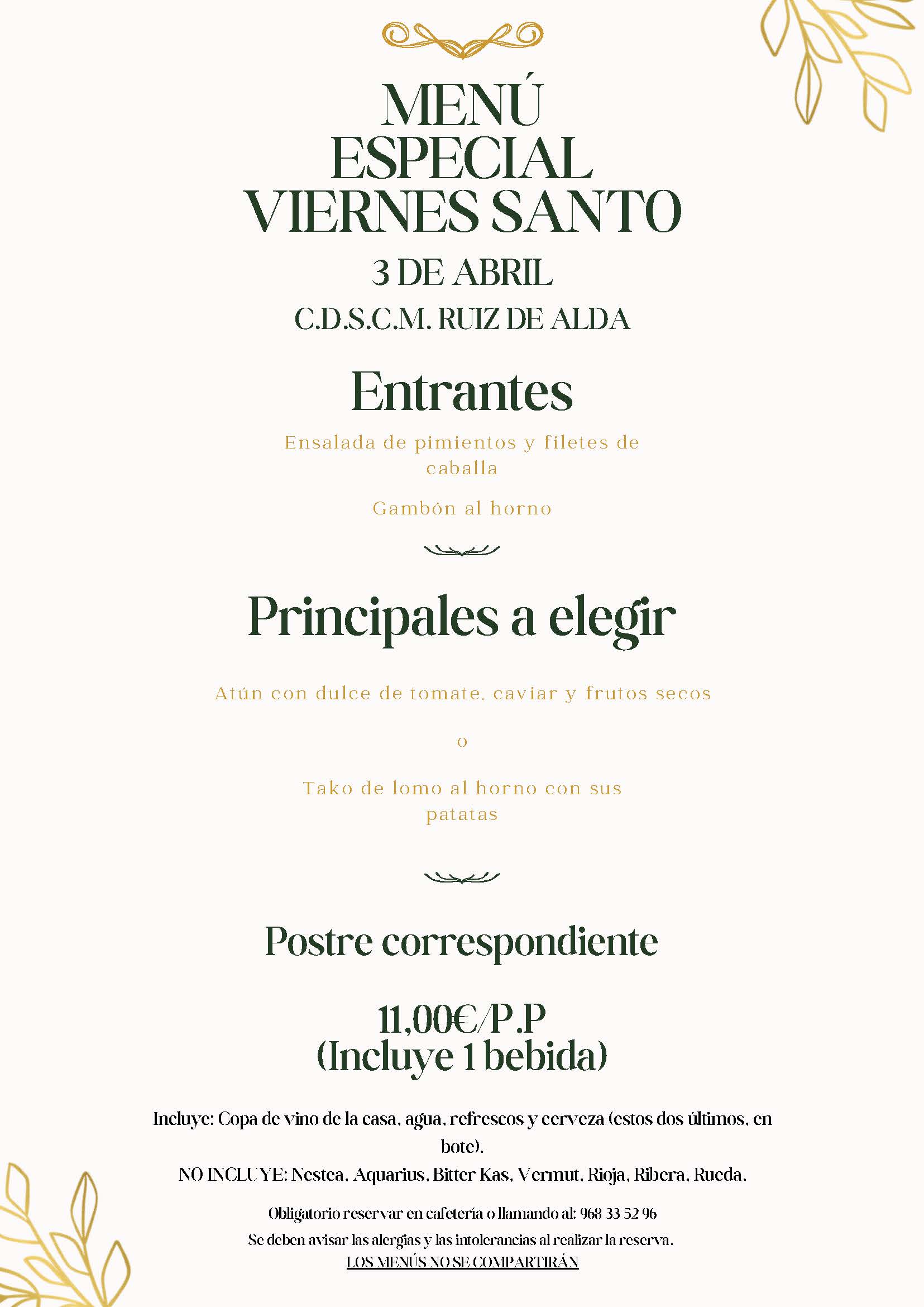 Menú especial Viernes Santo 03 de abril