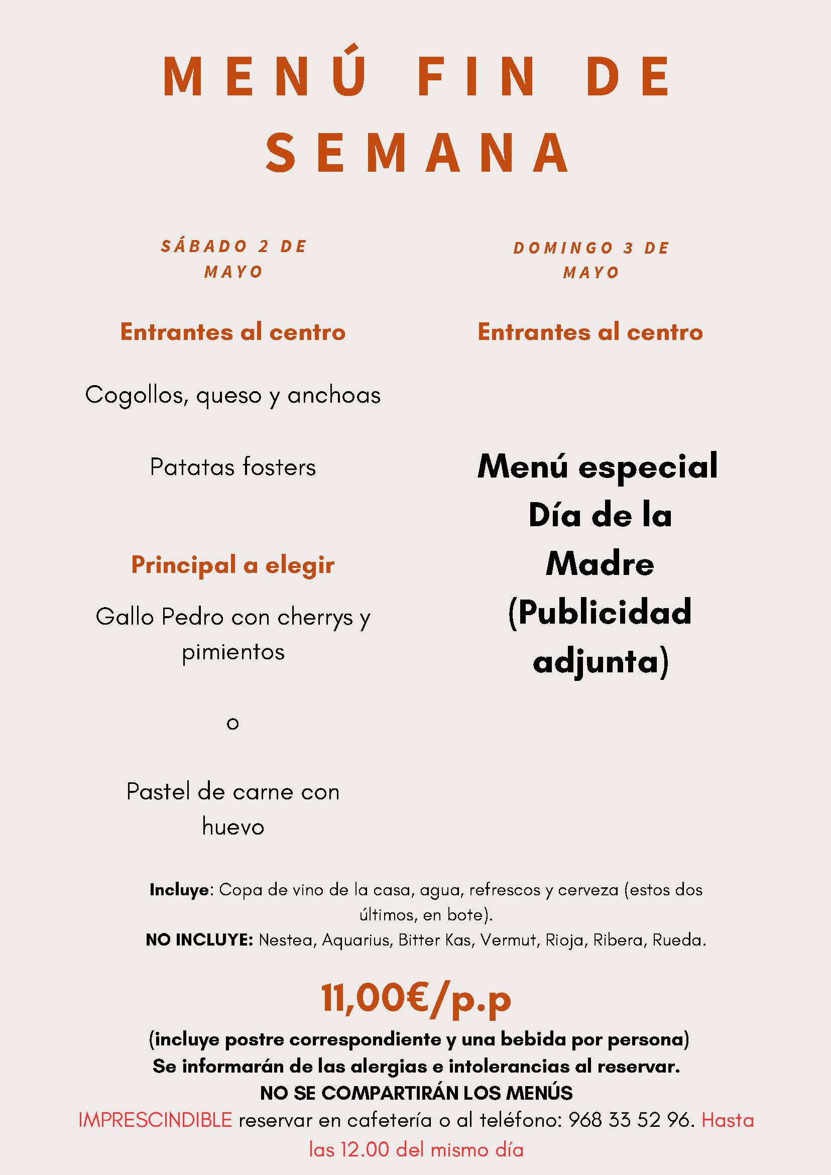 Menús fin de semana 02 y 03 de mayo 2026