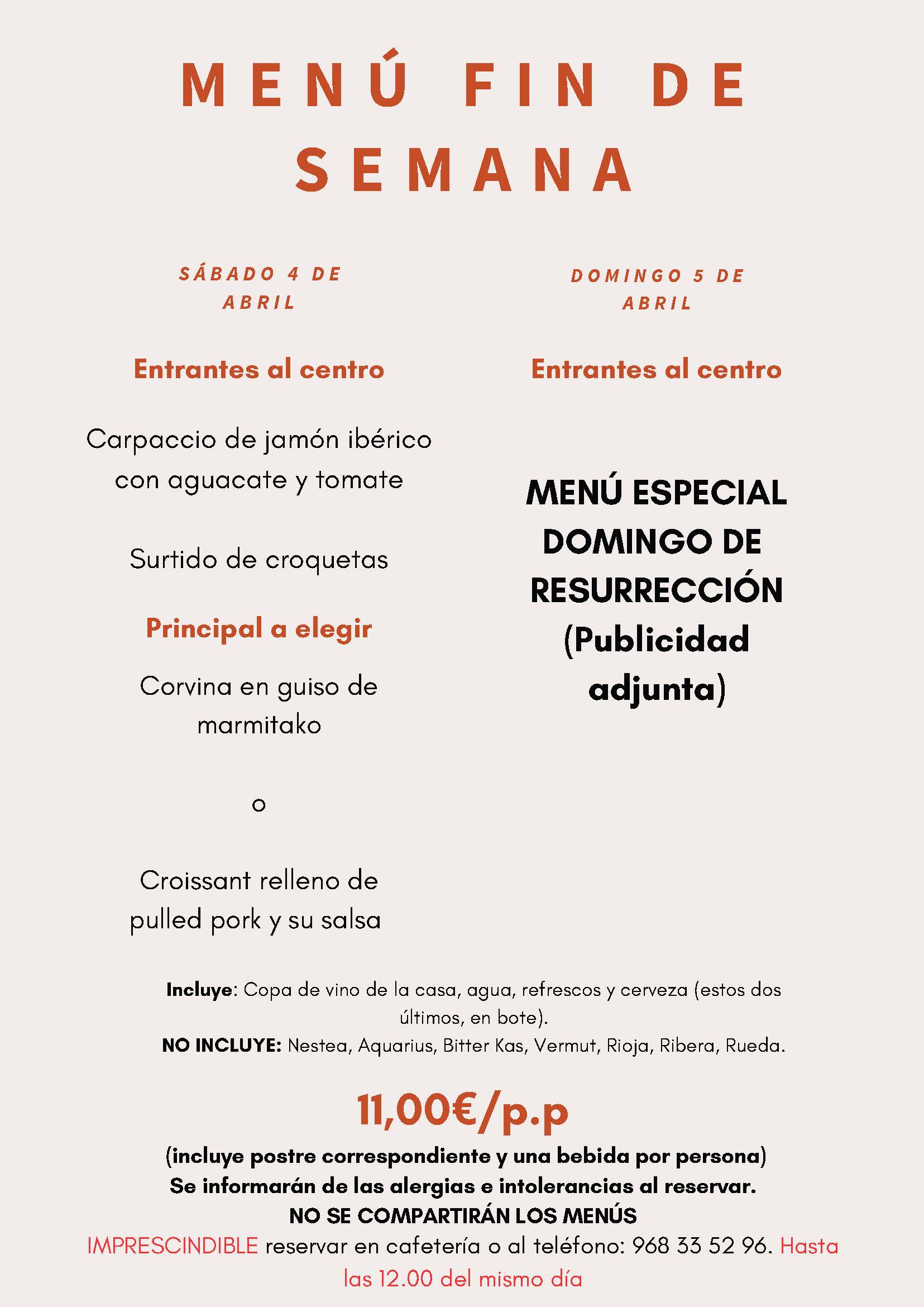 Menús fin de semana 04 y 05 de abril 2026