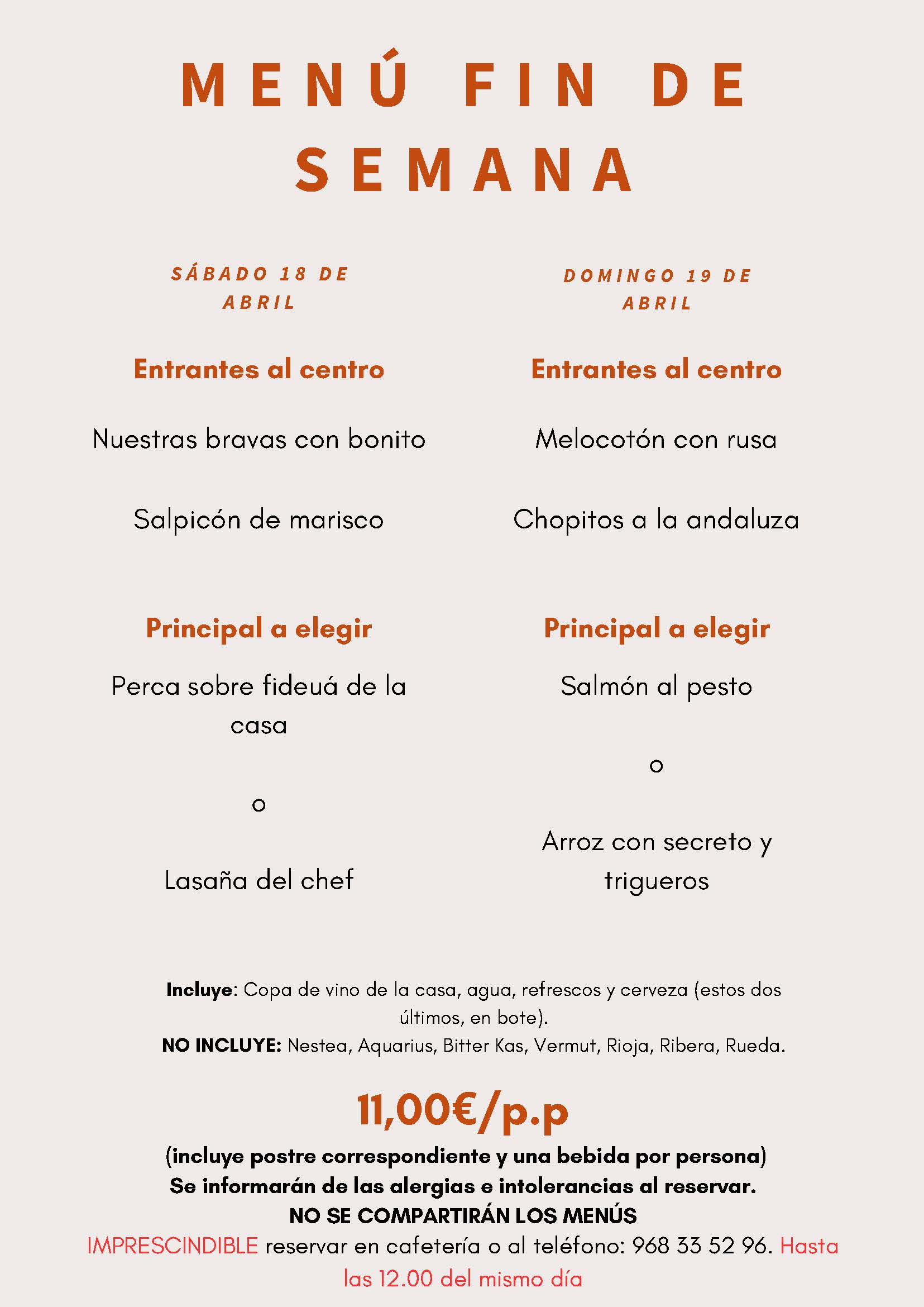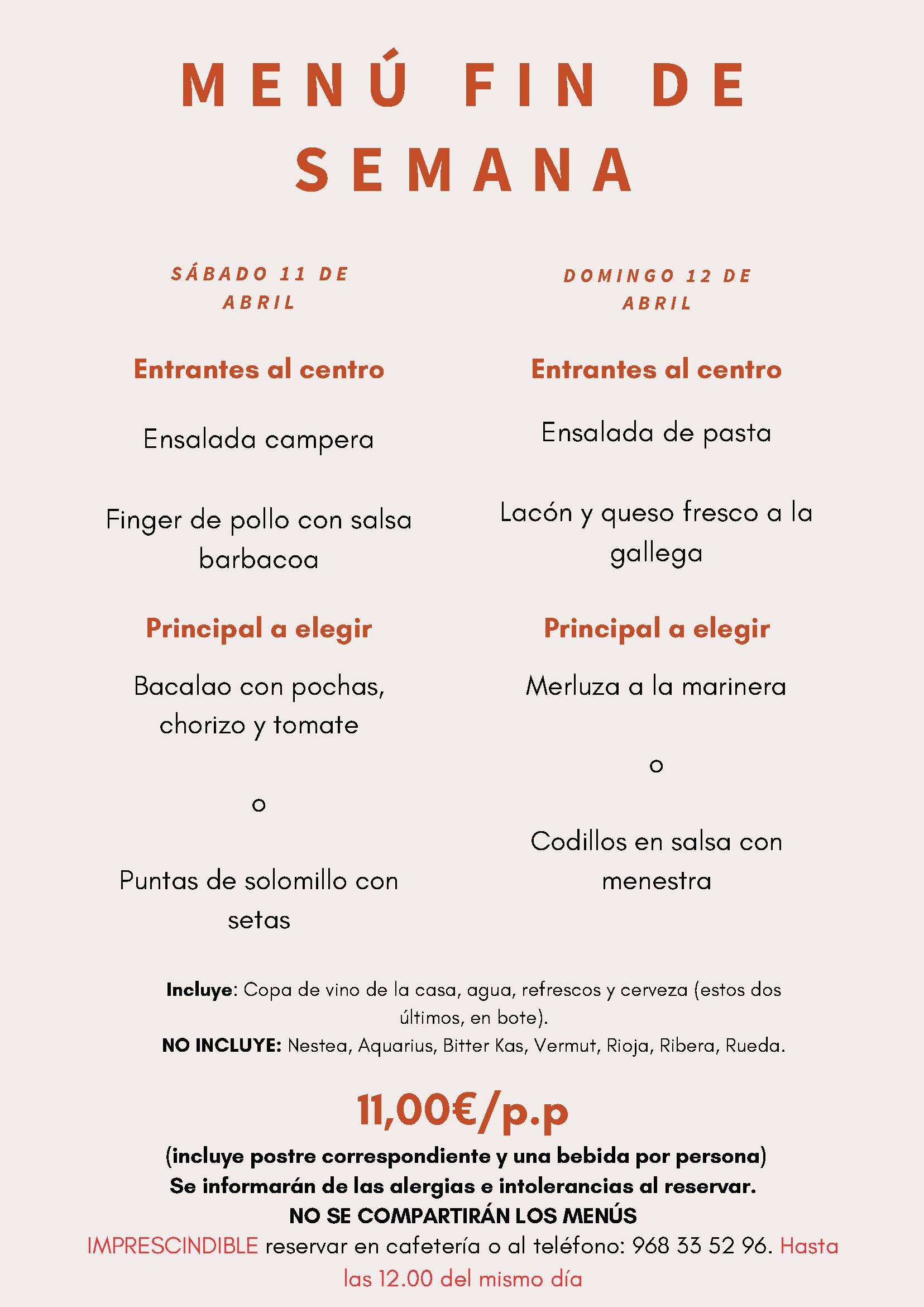 Menús fin de semana 11 y 12 de abril 2026