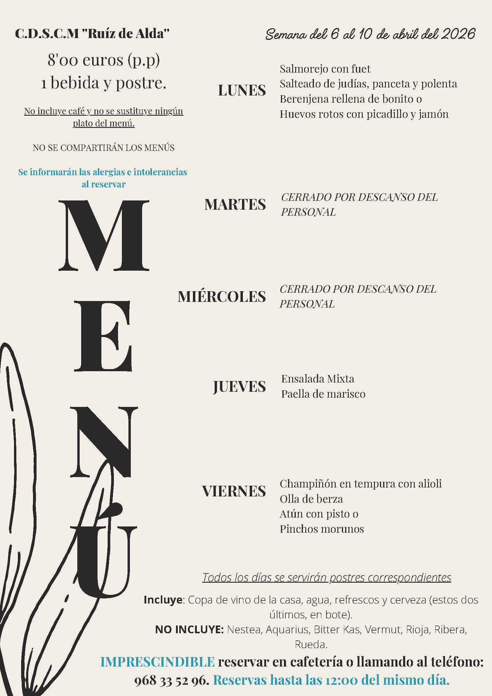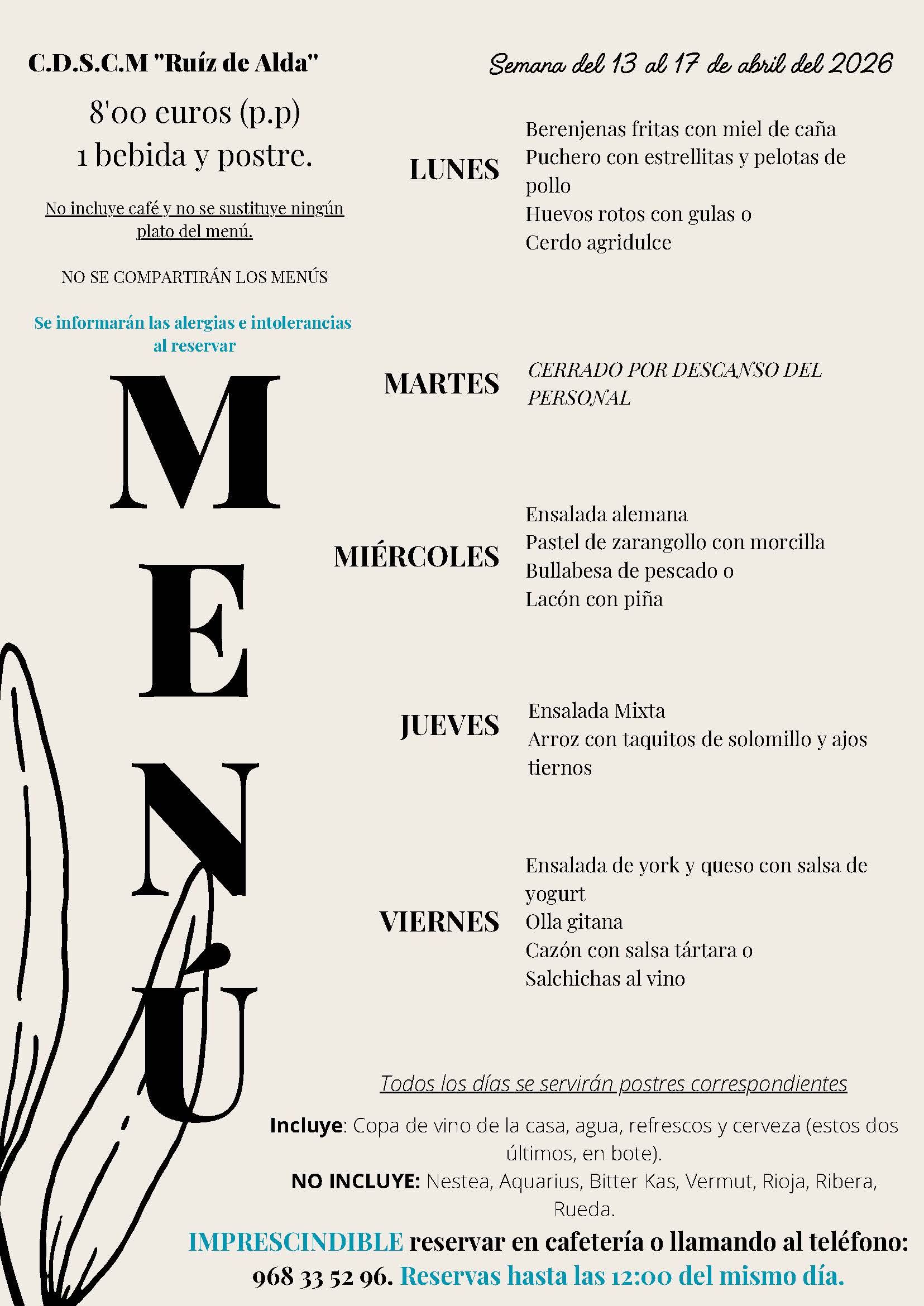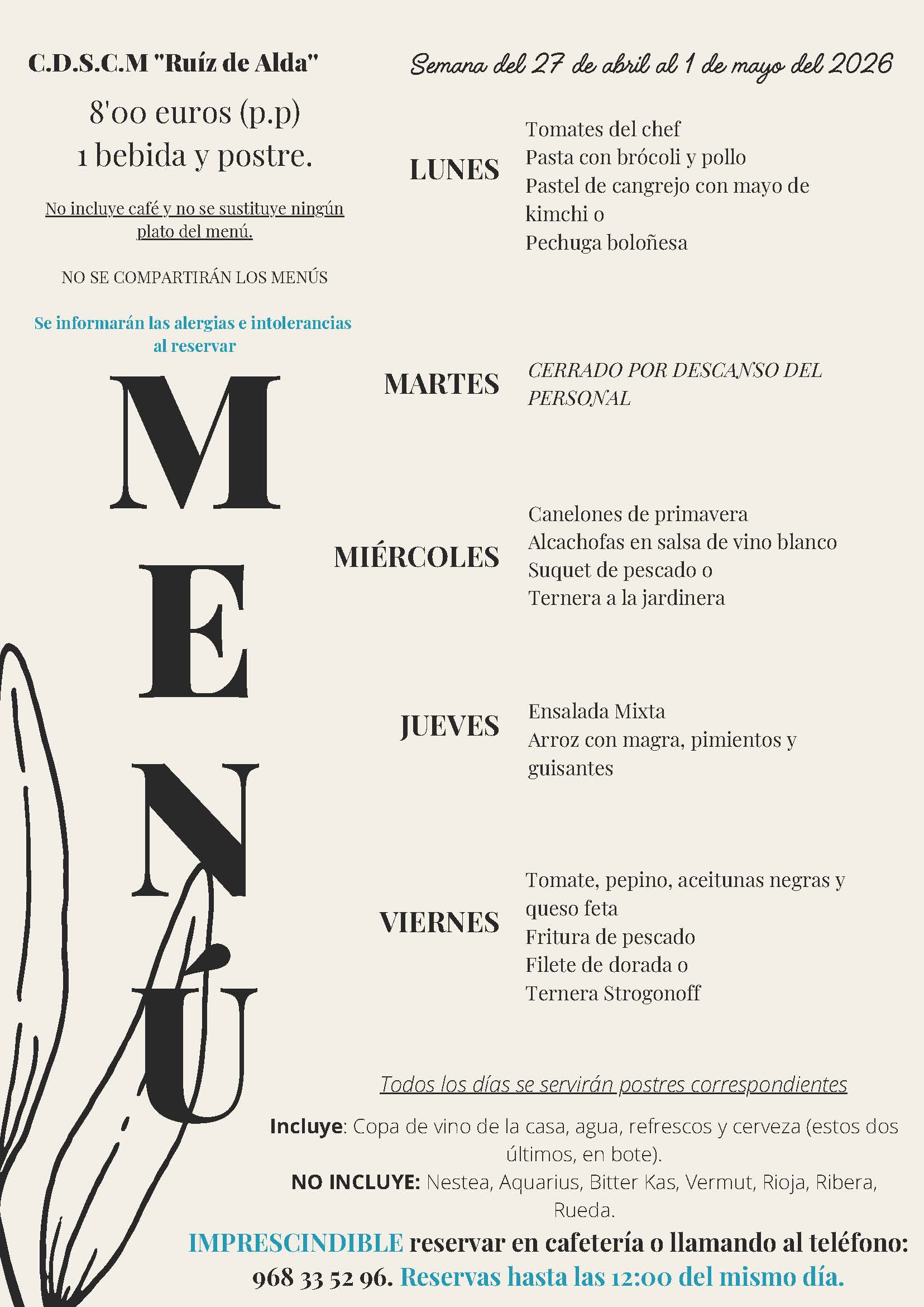 Menús semana 13 al 17 de abril 2026
