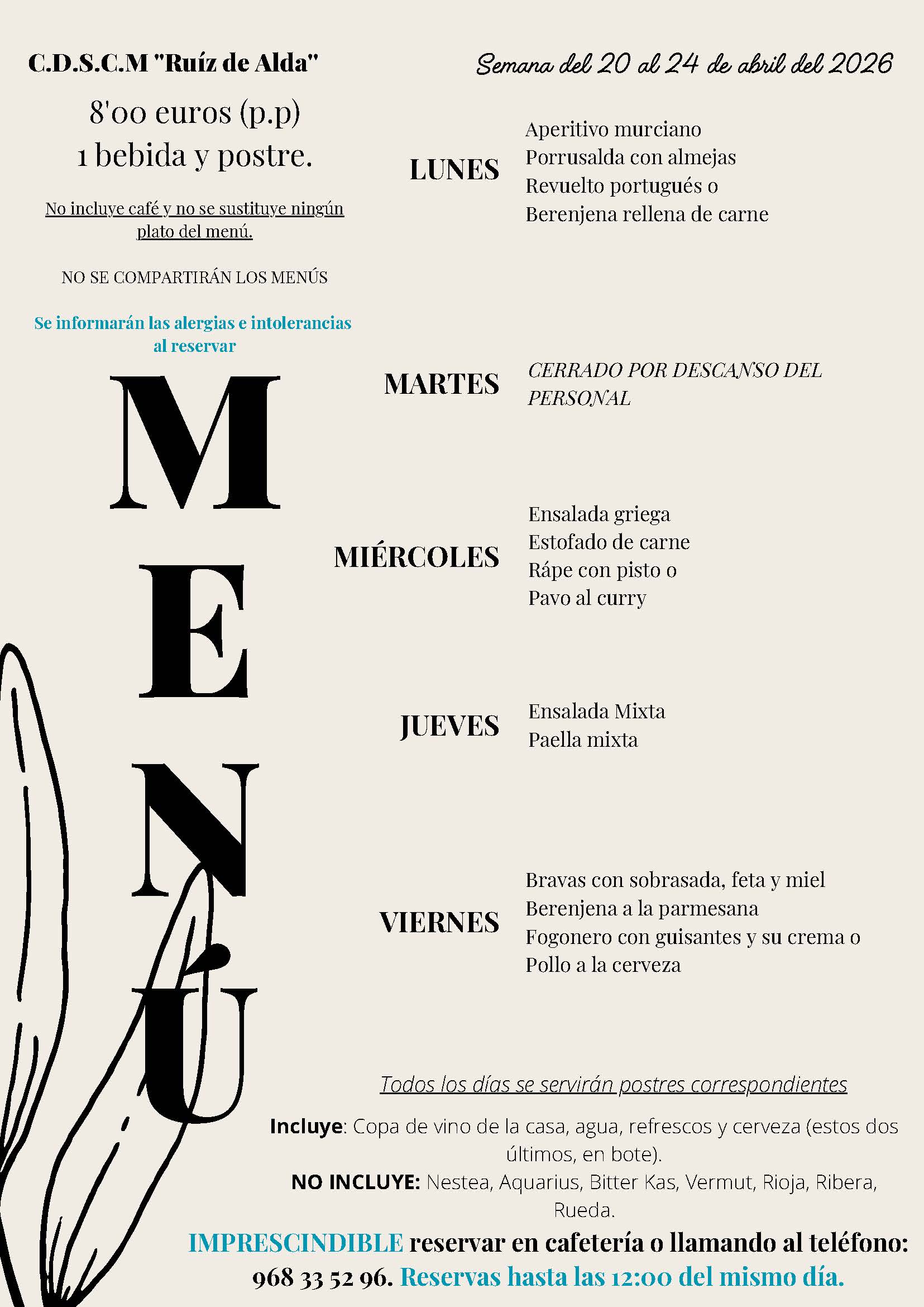 Menús semana 20 al 24 de abril 2026