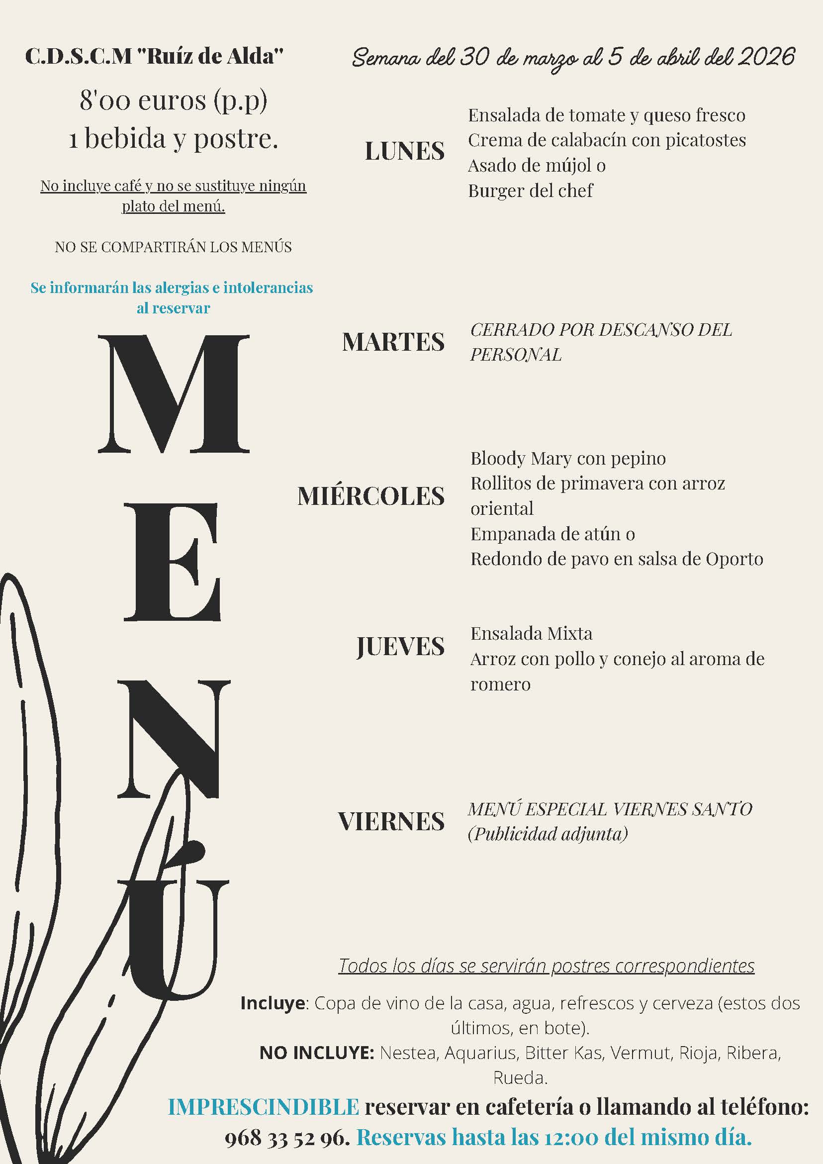 Menús semana 30 de marzo al 03 de abril 2026
