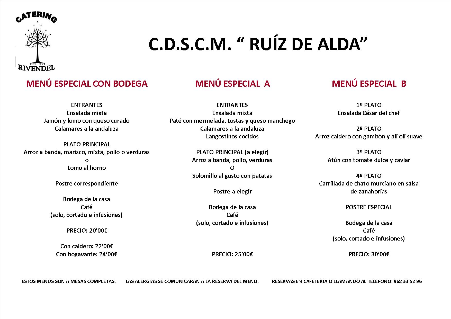 Menús Especial e Infantil