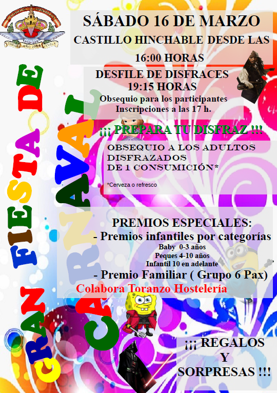 Desfile de Disfraces a las 19:15 horas. (Inscripciones antes del desfile)