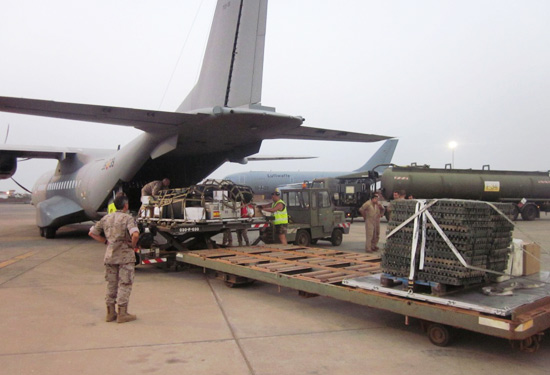 On 26th January, 2013, the first 30 components of the Air Force took off from Zaragoza Air Base aboard the plane C-130 Hercules of the 31st Wing. After a stopover to incorporate personnel of the Mobile Air Control Group (GRUMOCA) in Morón Air Base, the C-130 headed for the Canaries from where it continued along the coast of Mauritania and Senegal to Dakar.