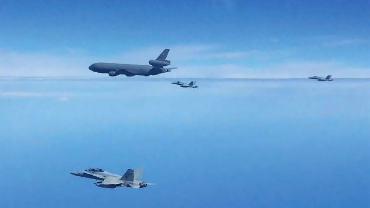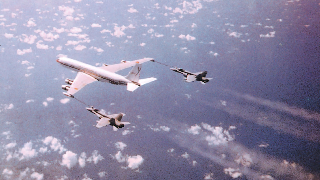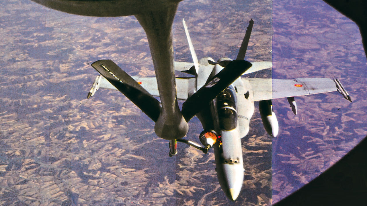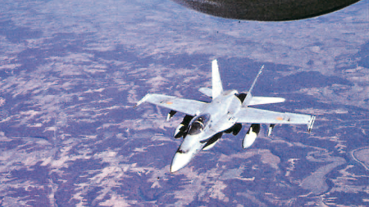 Para su entrenamiento, 27 pilotos de F-18 han realizado en los últimos dos días sus prácticas con un avión KC-135FR del Armée de l´Air francés, similar al norteamericano del que se reabastecerán de aquí en adelante. Las estrechas y magníficas relaciones con las autoridades francesas han facilitado que, ante la cancelación sobrevenida del avión cisterna de la USAF inicialmente previsto, se pudieran coordinar estas prácticas con sus medios en un corto periodo de tiempo.